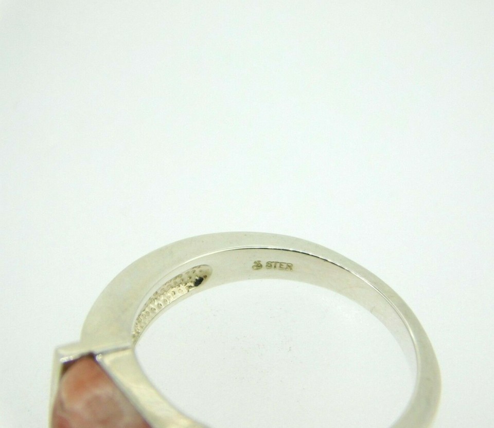 - Sterling 8mm Pink Genuine Natural Rhodochrosite Cabochon Ring Square (#J5046)