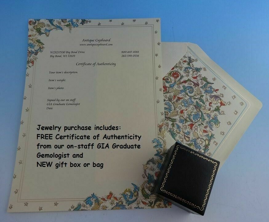 All of our jewelry is guaranteed authentic by our Graduate Gemologist of the Gemological Institute of America (GIA).