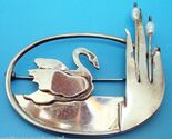 Arts and Crafts hand wrought sterling brooch with swan on water with cattails and freshwater pearls. It measures 53mm x 45mm or 2" x 1 5/8". It weighs 6.1 dwt., and the piece dates from the 1940's. Inventory#PZ3141.