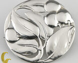 Sterling Silver Round Repousse Brooch w/ Leaves and Berries