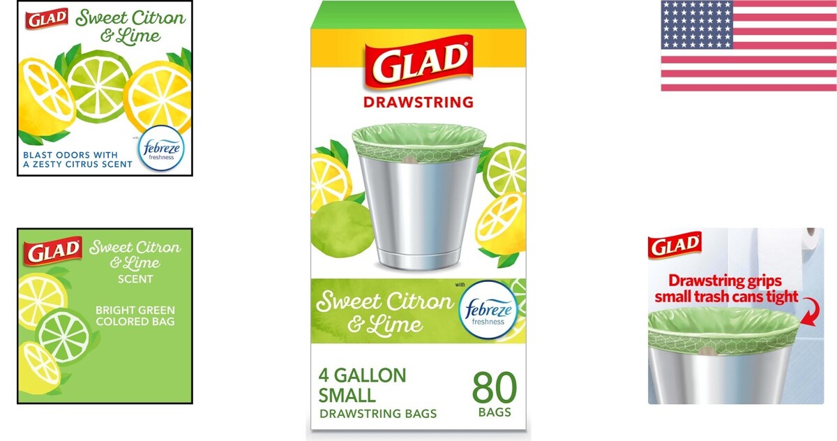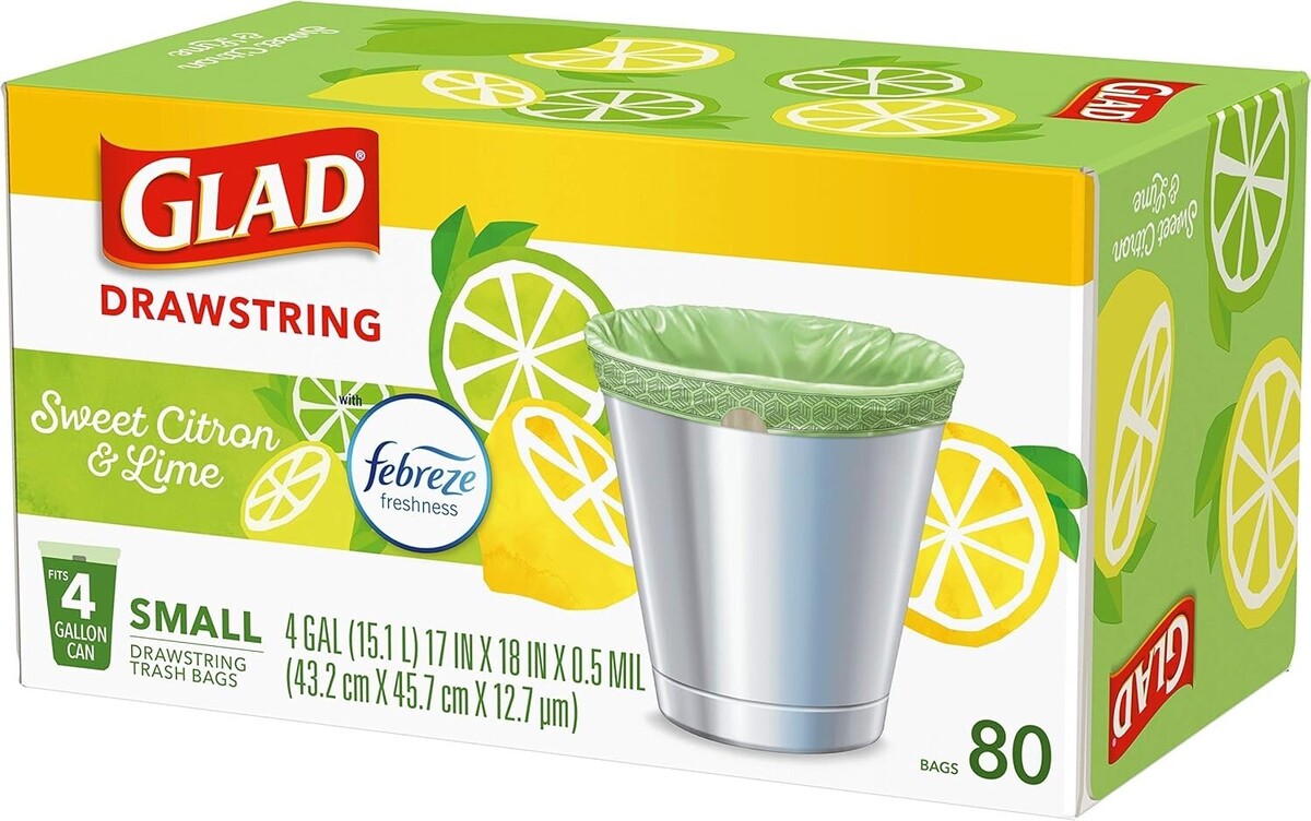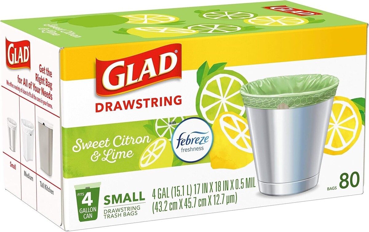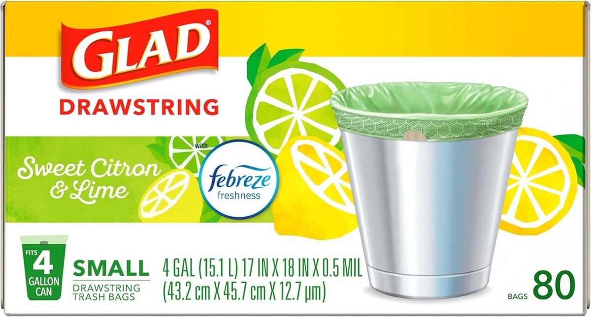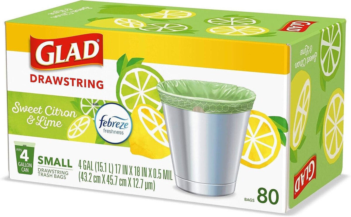 - Strong & Sturdy 4 Gallon Drawstring Trash Bags with Febreze - Odor Control 80 Ct