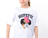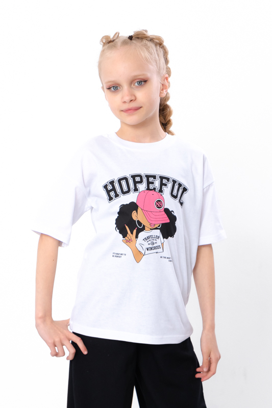 A stylish and comfortable printed T-shirt ? the perfect choice for everyday wear! Made from kulir fabric (100% cotton), it?s breathable and gentle on the skin, causing no irritation or overheating. The model features a loose fit, short sleeves, and a trendy print with the word HOPEFUL and an image of a girl. Available in pink-lilac, light raspberry, and white. Great for kindergarten, school, walks, or summer camp ? it combines style, comfort, and practicality!