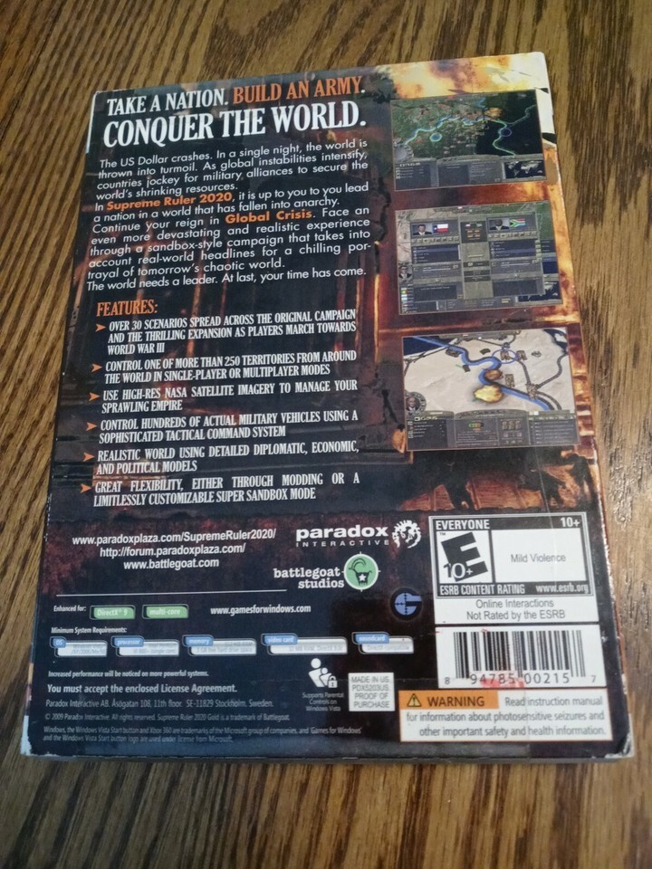 Supreme Ruler 2020 Gold - PC - CD-ROM - VERY GOOD.Very Good Condition ; Condition is Used-See Pictures Attached For Exact Condition . Shipped with USPS First Class Mail . You Will Receive 1 ea PC CD ROM as shown in pictures attached. SHIPS N 24 HOURS Packed By Our Award Winning Packaging And Shipping Department Long Time E-commerce Seller For Over 20 Years LIMITED AVAILABILITY THANK YOU FOR SUPPORTING OUR FAMILY OWNED USA BUSINESS Collectible Very Good Condition PC CD ROM (Has Wear See Pictures Attached For Exact Description) - CD's Are Tested And Cleaned With Our Professional CD Cleaning Equipment Before Shipped - Ships Immediately - Great Product at a Unbelievable Price - Your Chance To Own This Collectible PC CD ROM Before Its Gone. Inventory Box #6211