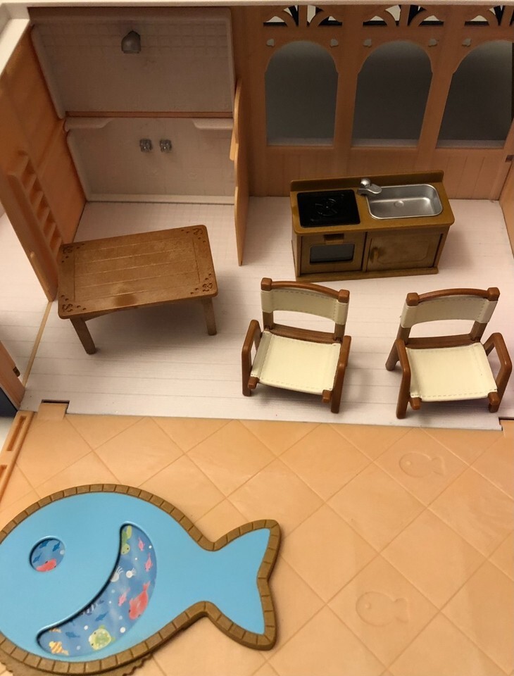 Sylvanian Families Calico Critters Seaside Cruiser House Boat. Most of the pieces are there, it is missing some of the smaller pieces. The toy can be used as a regular toy ship or it can open it up to make a ship house. The toys are in good, clean, pre-owned condition. Calculated shipping is applied to cart when you purchase multiple items.