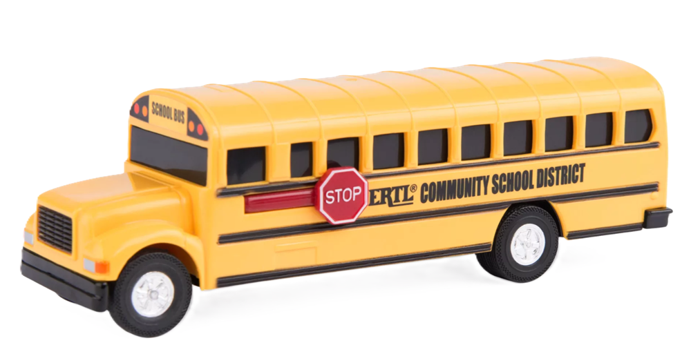 Put your kid in charge of the school bus! They'll love having this pocket-size version of the real thing under their control. The stop sign folds in and out for realistic play, and the bus features a callout on each side reading ERTL Community School District. The free rolling wheels are ready for plenty of push along play. Whether imagining themselves driving to school or back home again, there's plenty of fun to be had for kids three years and up.