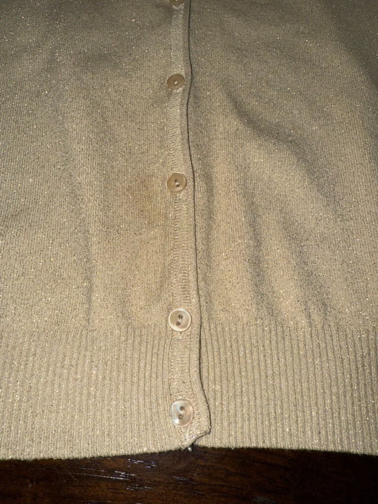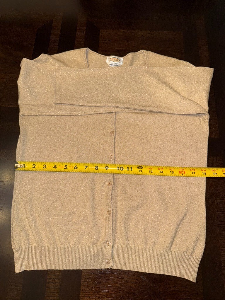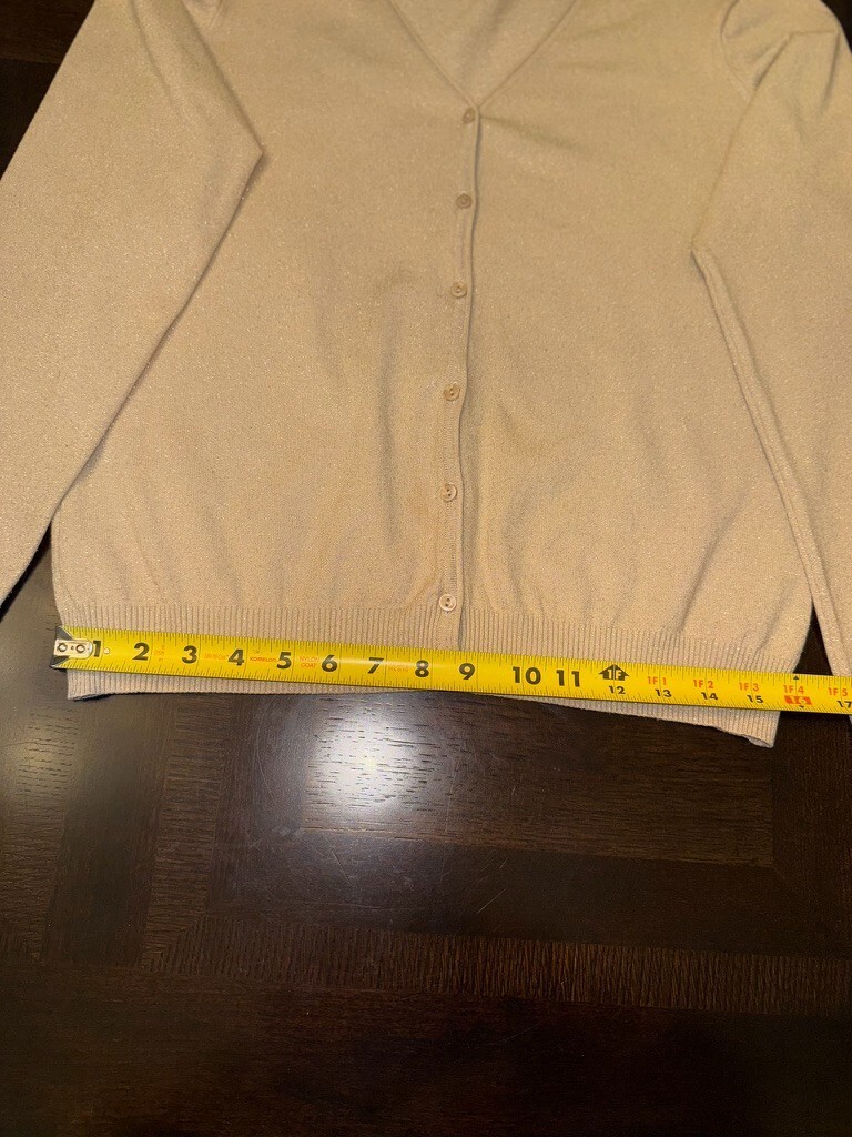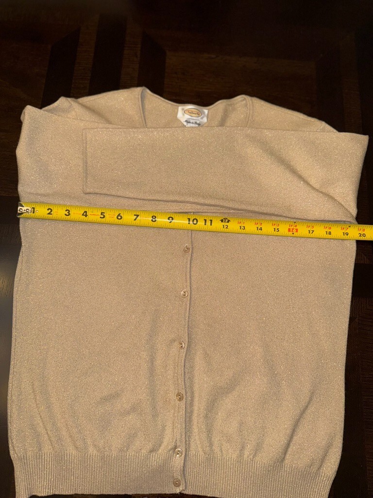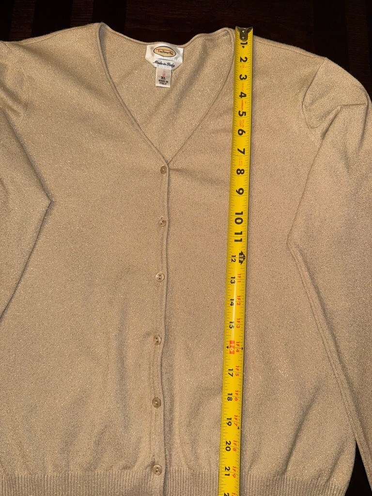 - Talbots Made in Italy XL Gold Shimmer Wool Cardigan Holiday Metallic Sweater NYE