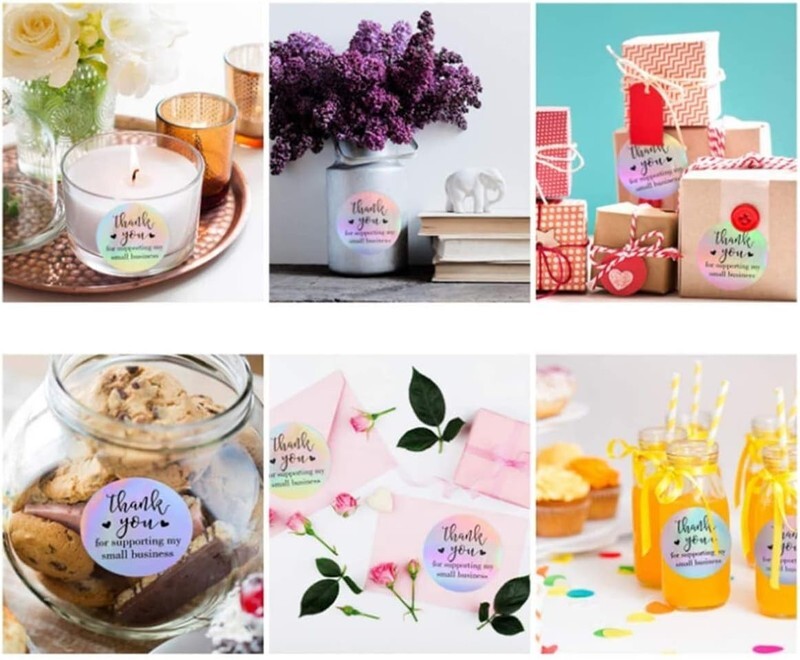 ?Material and Size?- These Thank You Stickers are made with premium quality holographic papqer,these stickers are color changing. They are waterproof, tearproof, easy to peel and stick, and remove without leaving residue. Nice decoration for gift wrapping; 500 pcs a Roll, Each measures about 1.5 inches in diameter, suitable size for you to use.