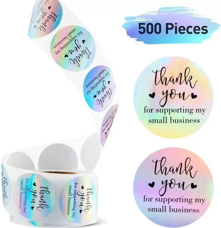 Thank You Stickers, 500Pcs 1.5Inch Thank You for Supporting My Small Business Stickers, Holographic Thank You Stickers for Small Business, Waterproof Stickers for Packaging