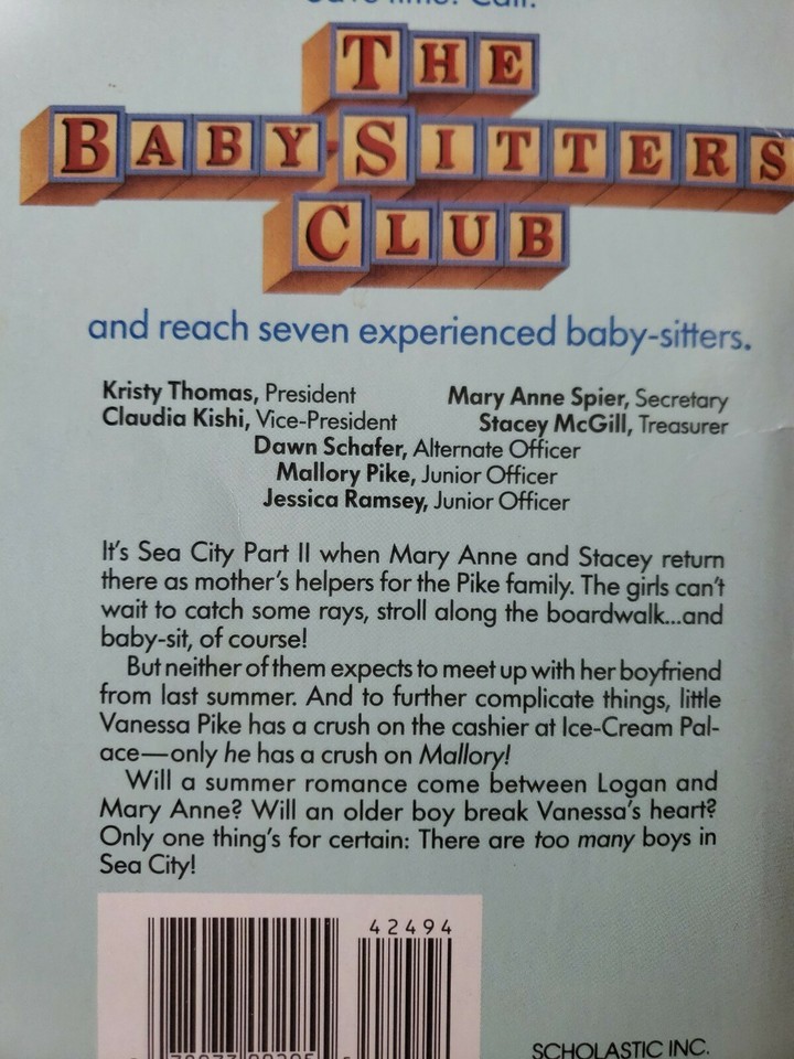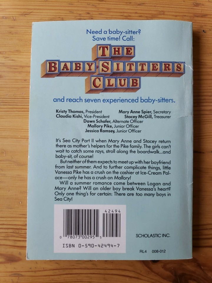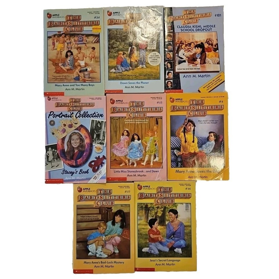 The Babysitters Club Book Paperback Book Lot of 8 Includes: #4 Mary Ann Saves the Day #15 Little Miss Stoneybrook...and Dawn (creased cover) #16 Jessi's Secret Language (tear to back cover) #17 Mary Ann's Bad-Luck Mystery #34 Mary Anne and Too Many Boys 1990 #57 Dawn Saves the Planet #101 Claudia Kishi, Middle School Dropout Portrait Collection Stacey's Book (creasing to covers) No missing pages or inscriptions. No marks or stains. #57, #101 has name on page edge, #16 and Stacy's Book have wear/tear to the outer cover. Bindings are good and no marginal notes. (Adding as I collect them) Smoke-free, pet-friendly home