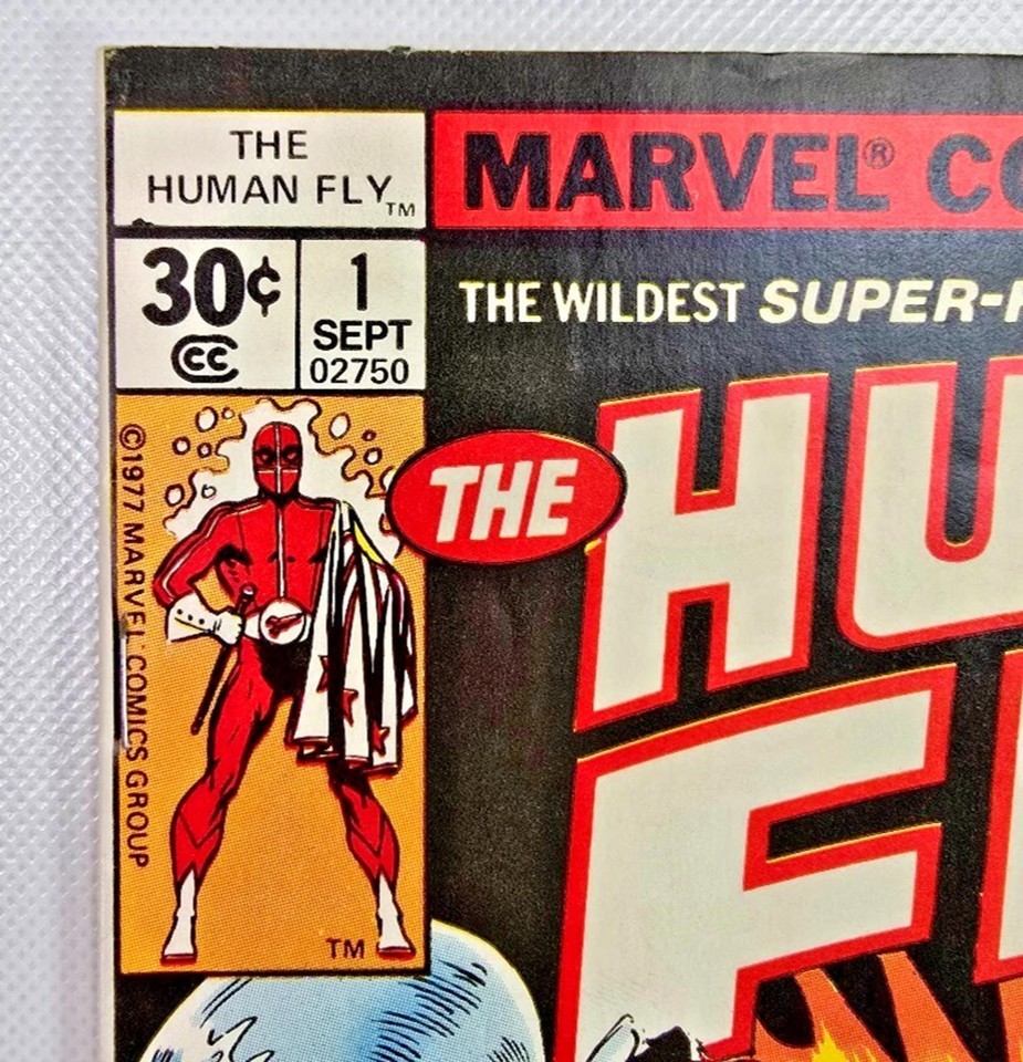 Thrill to the real-life stuntman turned superhero in his very first comic outing, a Bronze-Age spectacle where Spider-Man swings in for a quick cameo. Packed with high-flying action and brimming with ?70s Marvel charm, this newsstand copy is a standout piece for collectors of quirky first issues and crossover appearances alike. First appearance origin of The Human Fly; cover-date September 1977 Newsstand edition with barcode on front; Bronze-Age Marvel key Guest cameo by Spider-Man plus ads for classic ?70s Marvel titles Securely bagged boarded for safe shipment and archival storage