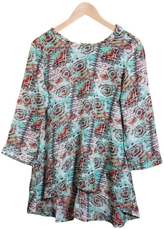 - The LIMITED Chiffon 3/4 Sleeve Loose Fit Flare Print High Low Blouse (Large) NWT