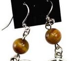 Made to function as miniature prayer beads, these earrings will allow you to focus your energy with your morning or nightly meditations. The gentle swaying of the earrings as you go about your day will constantly remind you of your purpose and help you to refocus your energy and willpower if they have wandered during your travels in the mundane world. Hypo allergenic, surgical steel French hooks. Tiger Eye, Pewter, Surgical Steel. Beads are approximately .25 inches in diameter, Charms are .5 inches in diameter, Overall length is about 2.125 inches.