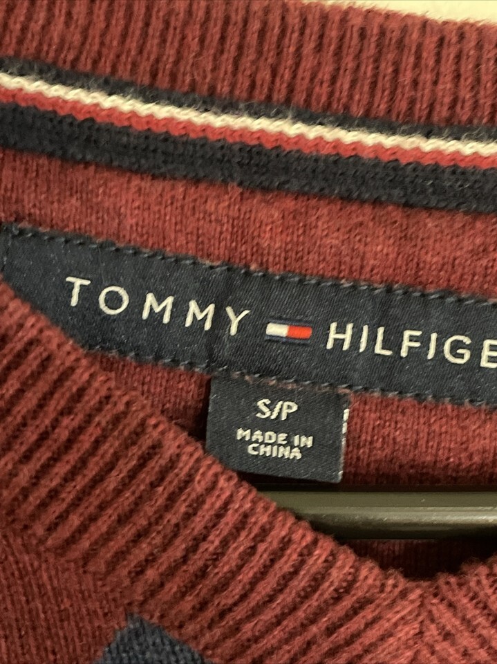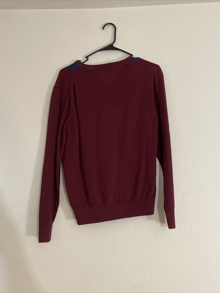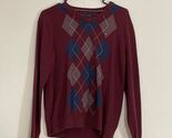 - Tommy Hilfiger Mens Cotton V Neck Argyle Pullover Sweater Burgundy Size Small
