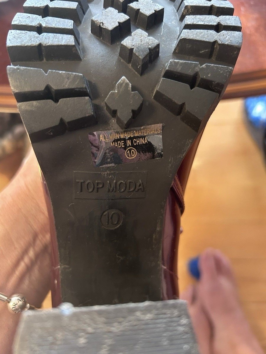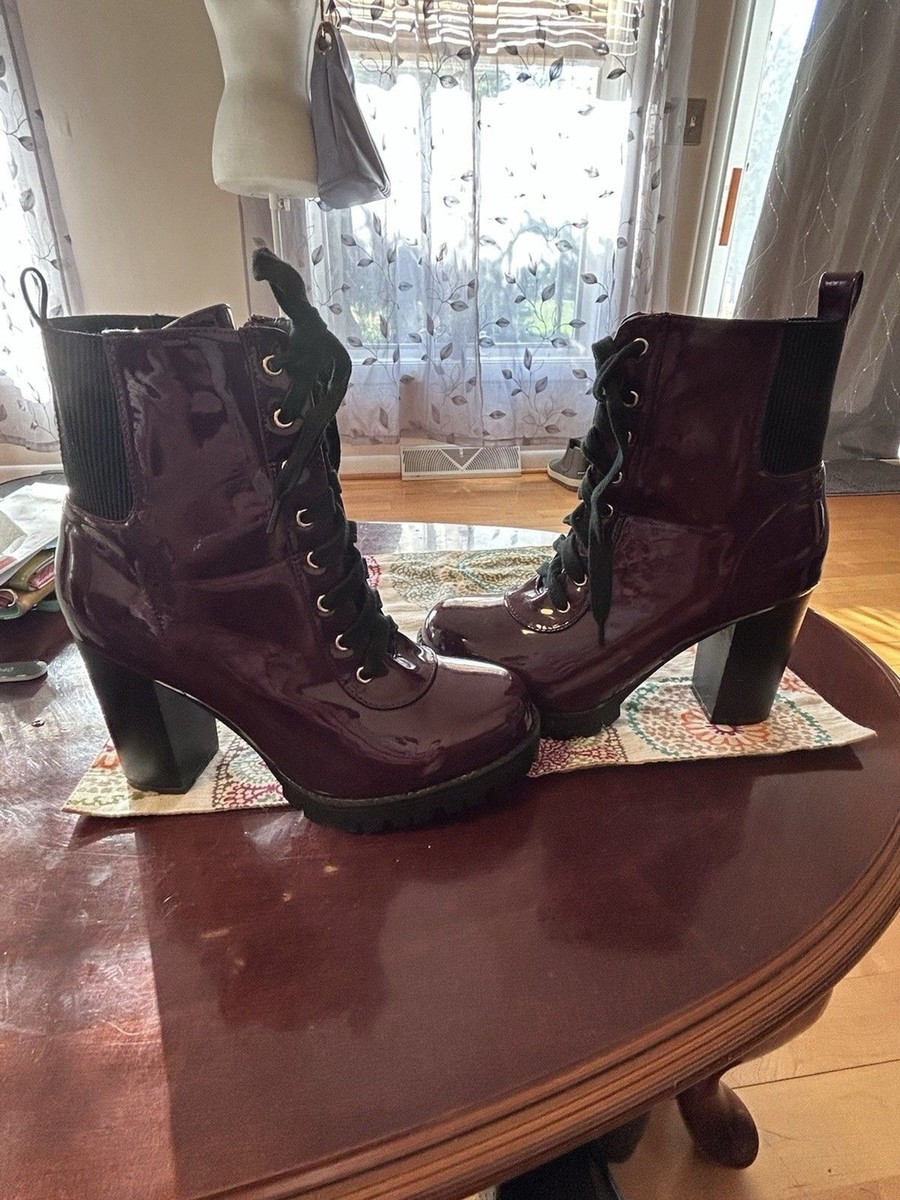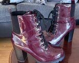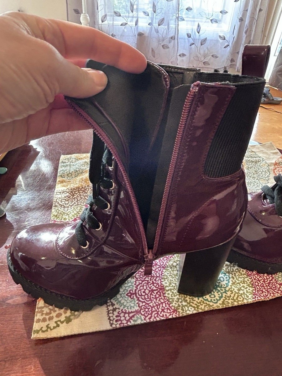 - Top Moda Chunky High Heel Combat Boots Zipper Lug Platform Wine Patent Leather