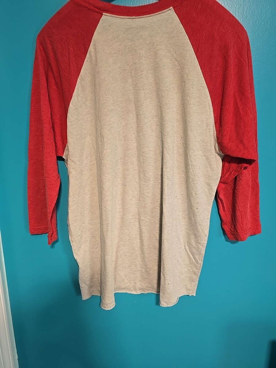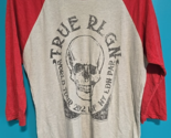 - True Religion XL WORLD TOUR 2002 SKULL Raglan Tee Vintage Red Heather Gray