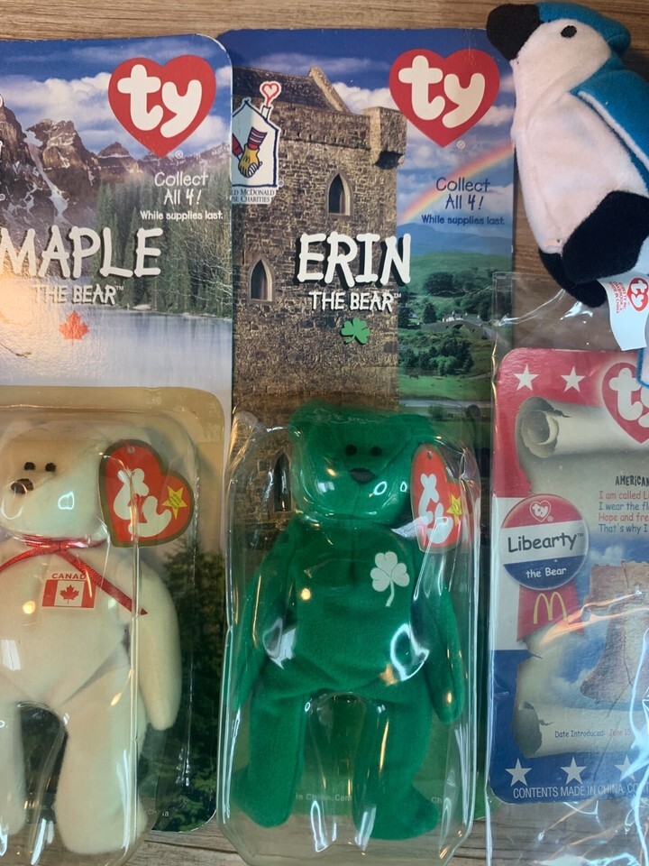 - Ty Beanie Baby 6 Piece Lot: Collectible Mini Plush Animals: Ireland, Canada, USA