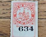 US Stamp State of Maryland Dept of Health Baltimore Used