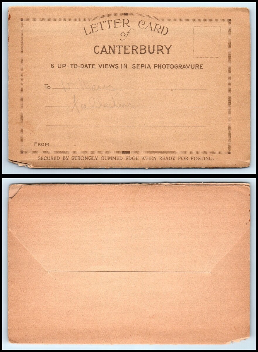 UK / ENGLAND Letter Card - CANTERBURY, 6 Views CC Back cover and flap are detached from front cover but included as shown Aprox. Size 3" x 5" Please view all photos closely to determine overall condition. DUE TO MY SCANNER SOME PHOTOS MAY APPEAR CUT-OFF - ANY ISSUES WITH CORNERS OR EDGES THAT DO NOT APPEAR IN THE PHOTOS WILL BE ADDED IN THE LISTING DESCRIPTION - If you have any questions please let me know. Postcards may have some light wear, dinged corners, discoloration, etc. Please view photos carefully and ask any questions before you purchase. I Ship World Wide I Combine Shipping Powered by SixBit's eCommerce Solution