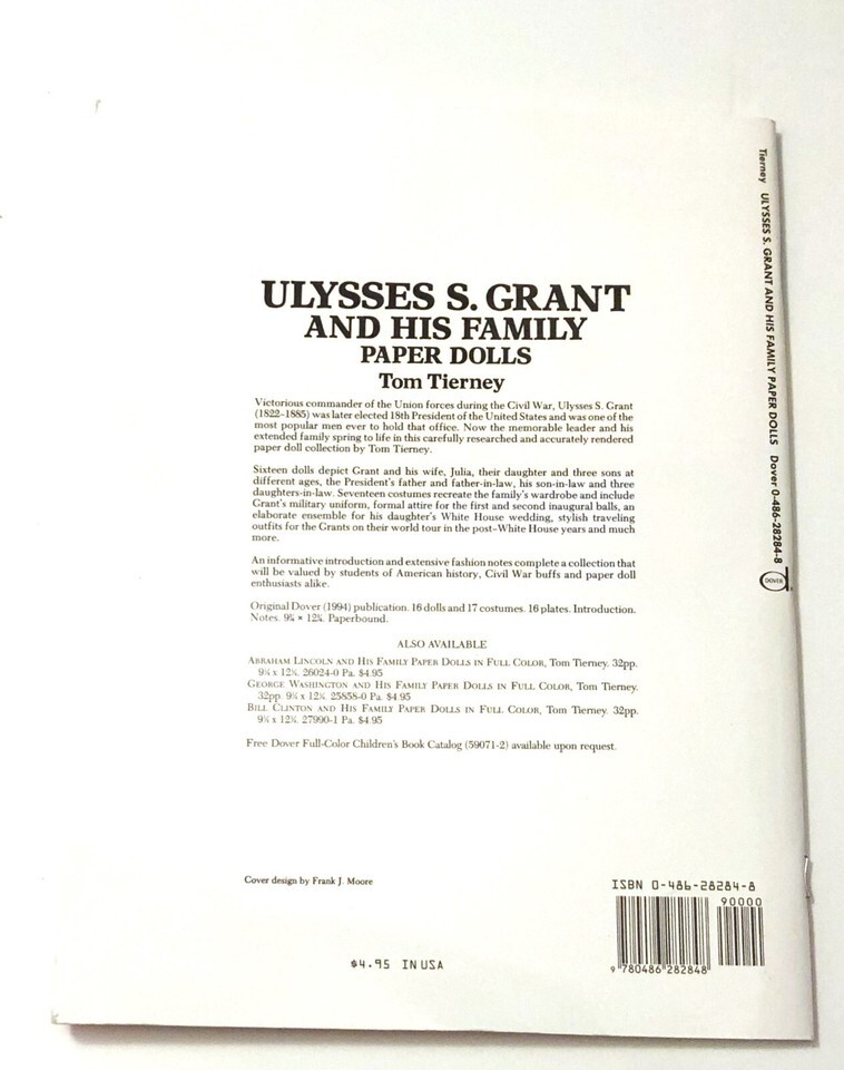 Ulysses S. Grant and His Family paper dolls by Tom Tierney. The book has not been used and may have a little wear on the cover, please review all photos for condition and be sure to check out our shop for more items. Calculated shipping is applied to cart when you purchase multiple items. Check out my store for more dolls at C C Collections | Stores