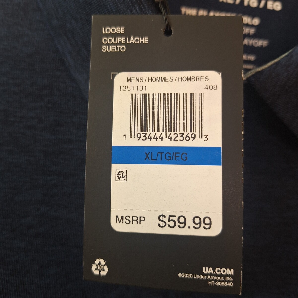 - Under Armour Playoff Polo Mens Short Sleeve Casual Golf Size XL Blue Black NWT