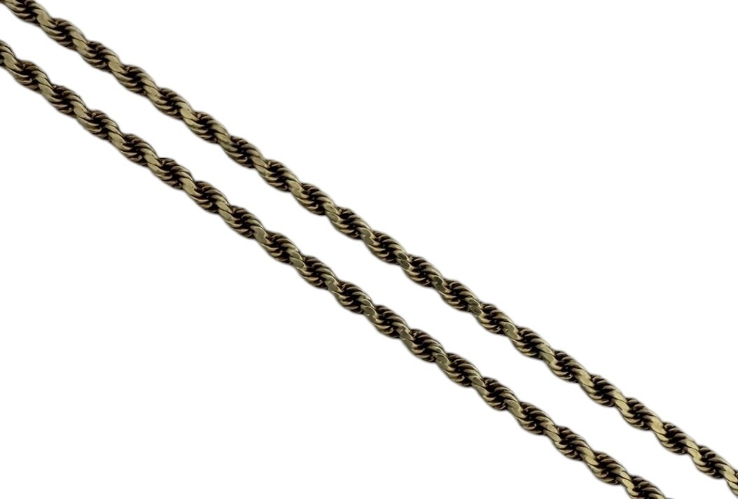 Type: ChainWeight: 4.3Karat: 10ktMetal: Yellow GoldGender: UnisexStyle: RopeSize / Length: 20"Owner applied: 10kCondition:Used