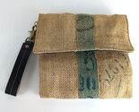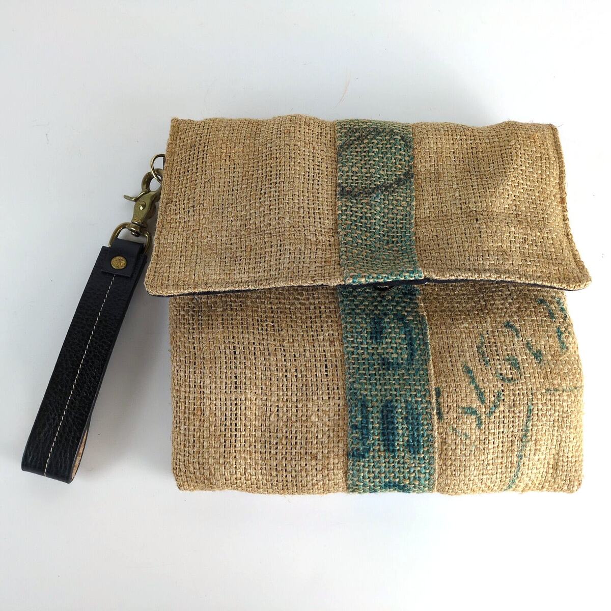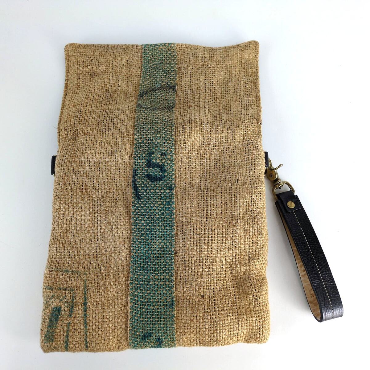 Upcycled Burlap Coffee Sack 11x10" Hand Bag Purse Italian Leather Strap Handle