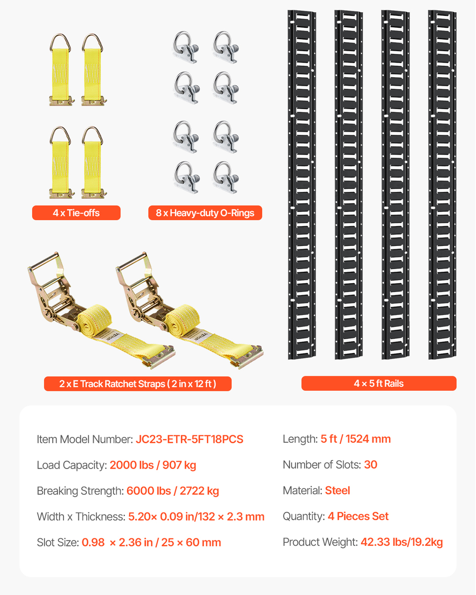 - VEVOR E Track Tie-Down Kit 18PCS 5in 2000lbs Load with Rails O-Rings Tie-Offs
