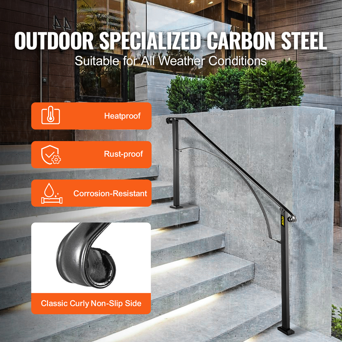 VEVOR Handrails for Outdoor Steps, Fit 4 or 5 Steps, Black, Arch#4 Wrought Iron
