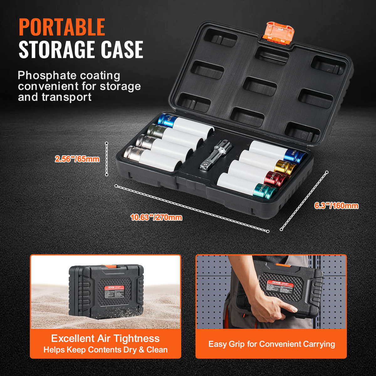 Portable Storage Case: All lug nut sockets are organized in a convenient storage case for easy access and portability. The airtight case helps keep your tools dry and clean, making it easy to carry.