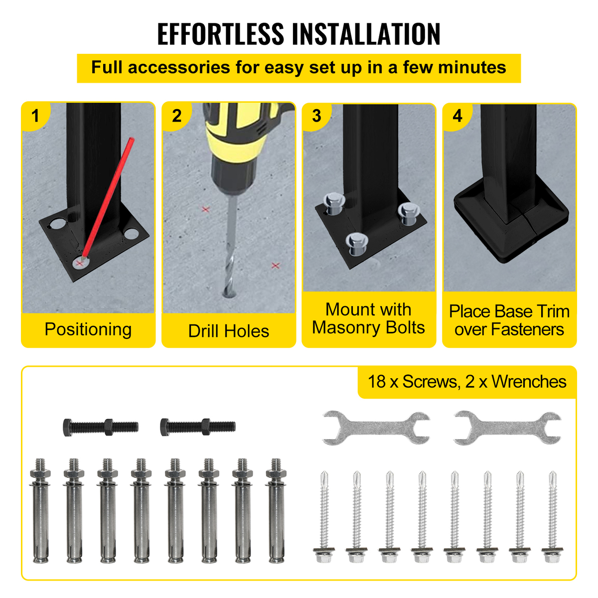 Effortless Installation: The front porch hand rail is easy to assemble with complete accessories, including 2 x M6 bolts, 8 x self-tapping screws, 8 x expansion screws, and 2 x open-ended spanners. Just choose your desired location, mark it, drill holes on the mounting surface, set up screws, and finally place base trim over fasteners. It only takes a few minutes to finish the installation.