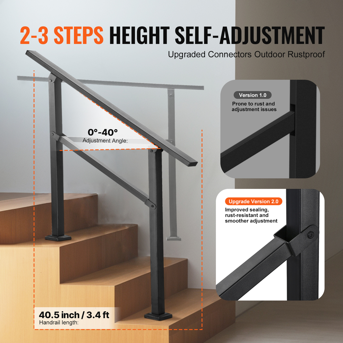 - VEVOR Square Tube Handrails for Outdoor Steps, 2-3 Step Stair Rail Kit, Black