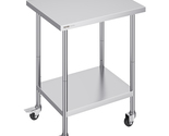 - VEVOR Stainless Steel Adjustable Work Table 24x30x38 in, 2 Storeys with 4 Wheels