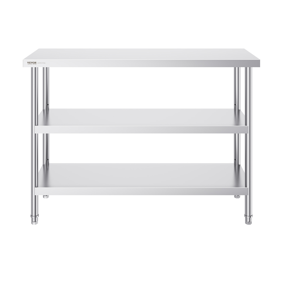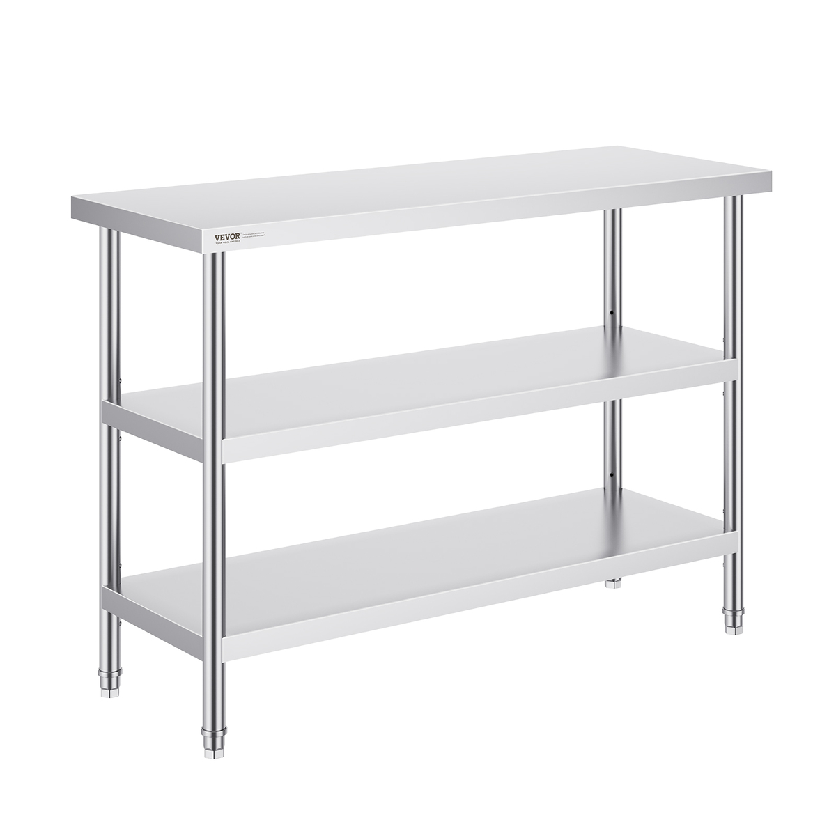 - VEVOR Stainless Steel Work Table 18x48x34 in, 3 Storeys, 2 Adjustable Undershelf