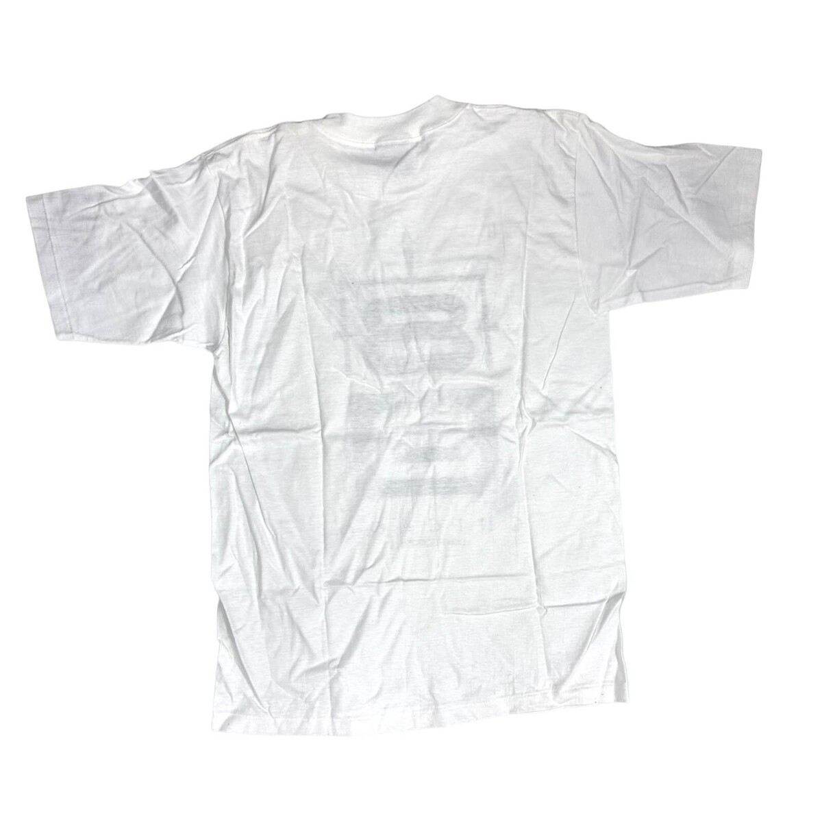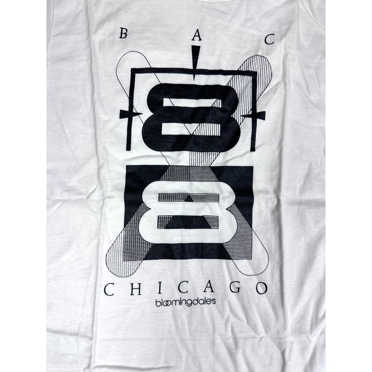 Vintage late 1980s Oneita Power T-shirt, a Bloomingdale?s promotional piece obtained from a former buyer who attended store events where these were given out. Features BAC Chicago graphic, single stitch construction, and made of 100% preshrunk cotton. Dated to around 1988.