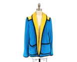 Vintage Adri Clothes Circuit blazer in bold turquoise, yellow, and black color-blocked terry velour. 100% cotton, lined, with open front and two patch pockets. Designed by Adri for Clothes Circuit, a division of Anne Fogarty.