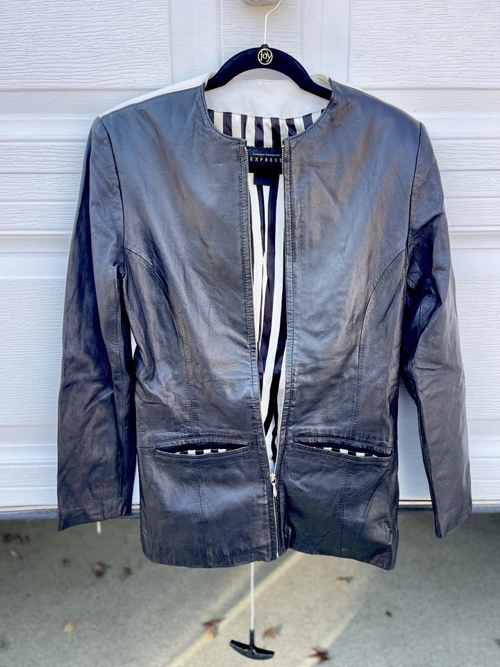 VTG Compagnie Internationale Limited Express Leather Jacket Black White Size M. Condition is Pre-owned - Good. Shipped with UPS Ground.