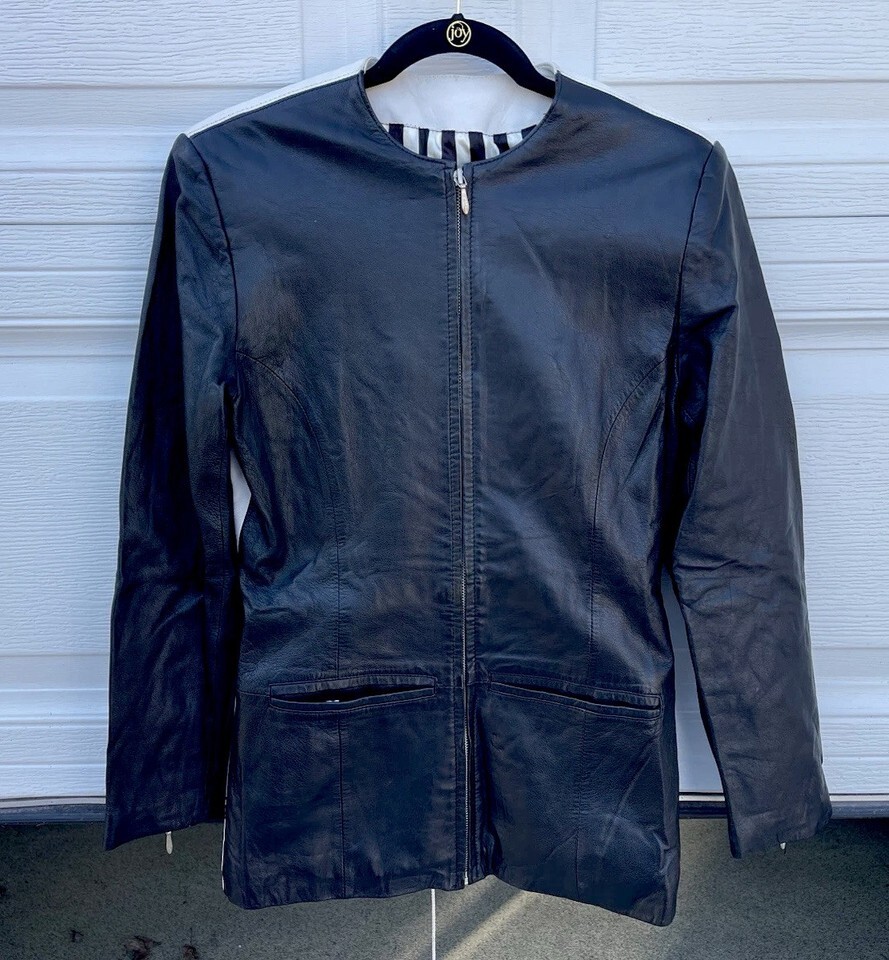 VTG Compagnie Internationale Limited Express Leather Jacket Black & White Size M