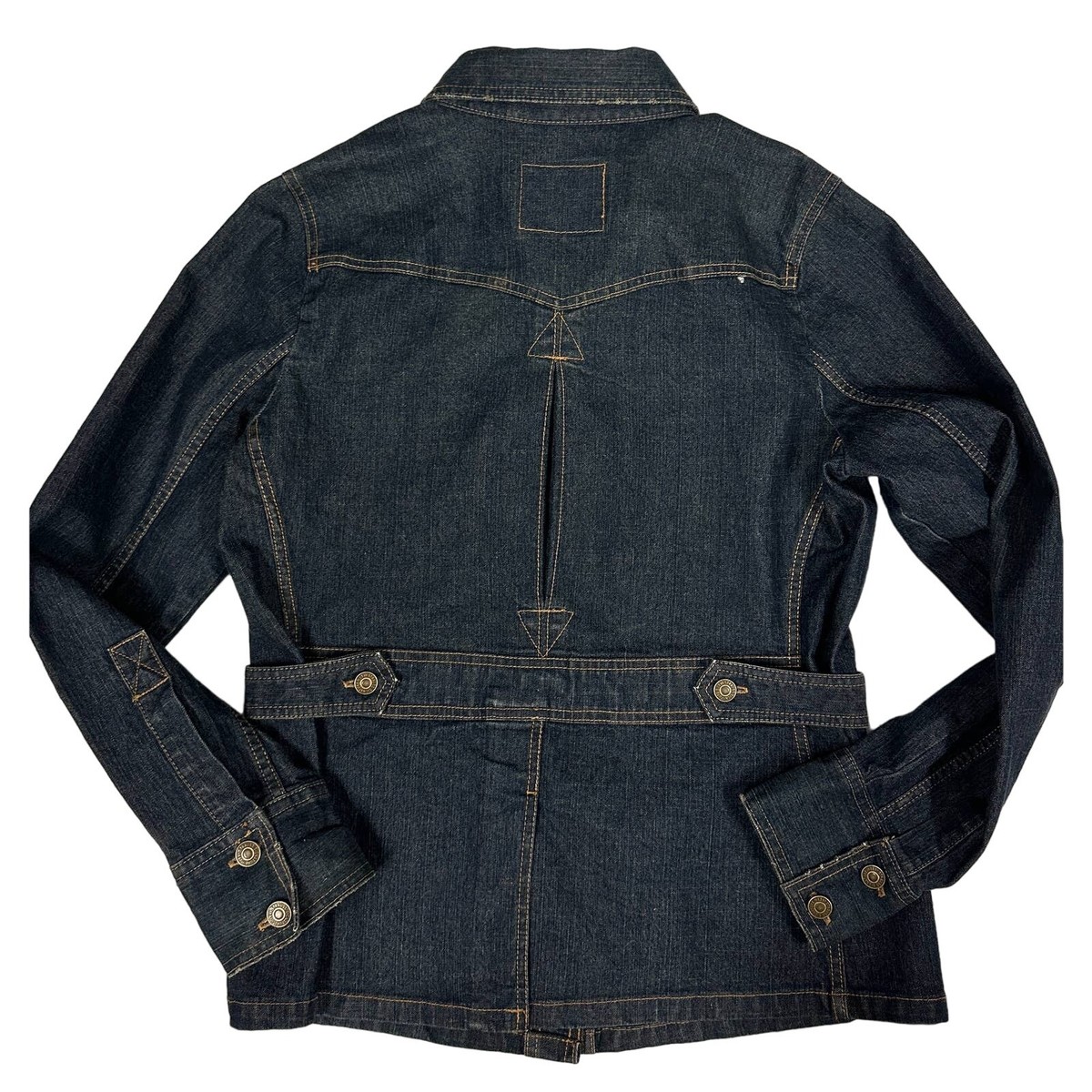 Levi Strauss Co., founded in 1853, is the world?s most iconic denim brand, synonymous with American workwear and cultural style. This jacket, RN 107487 and Made in Bangladesh, likely dates from the late 20th century but recalls the heritage of 1940s Levi?s jackets, with side cinch belts and vented back for mobility. Collectors value such pieces for their blend of vintage-inspired design with authentic Levi?s quality.