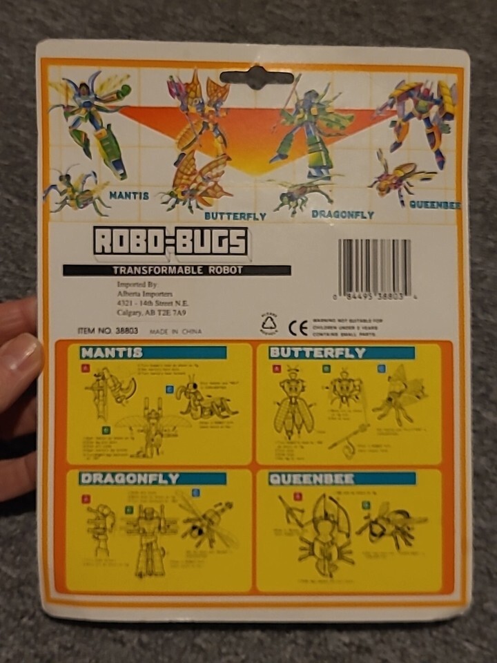 Here's a 1990s KO knock-off toy made by Boley Toys. This is a dragonfly from the Robo Bugs series. It is a RARE Canadian version card and toy. These were made obviously to cash in on the Transformers craze. Still new sealed on card. Bubble is good card has some curls on edges and price tag damage from being removed. Please see all the pictures! Quite a rare find and great for KO toy fans and collectors alike.