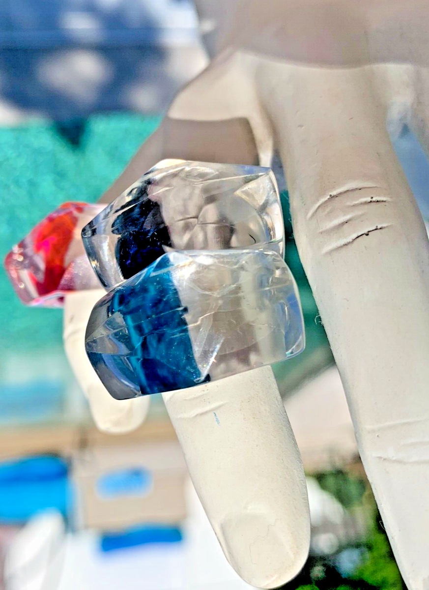 Fun Retro Vintage Ring Lucite: 4- Pink/Silver metallic faceted, 2 - Blue/ Silver all size 4 1960s NOS. Fun MOD rings! Just indicate which color you want. Right now there are 6 total of them.