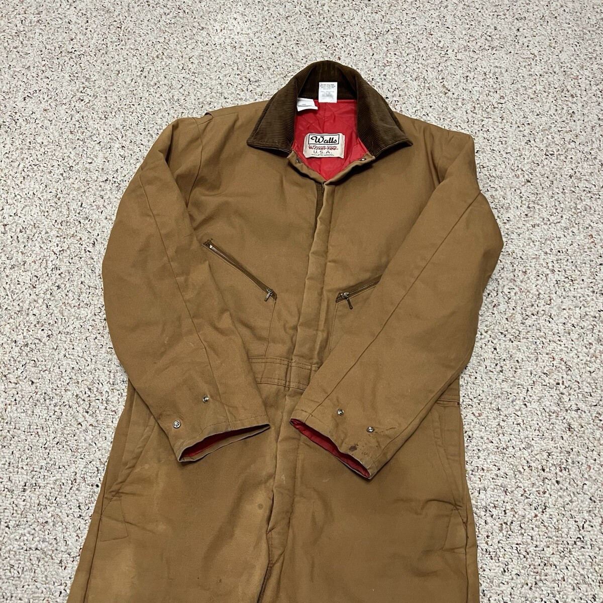 - VTG Walls Blizzard Pruf Coveralls Brown Heavy Canvas Large Short Chest 42-44