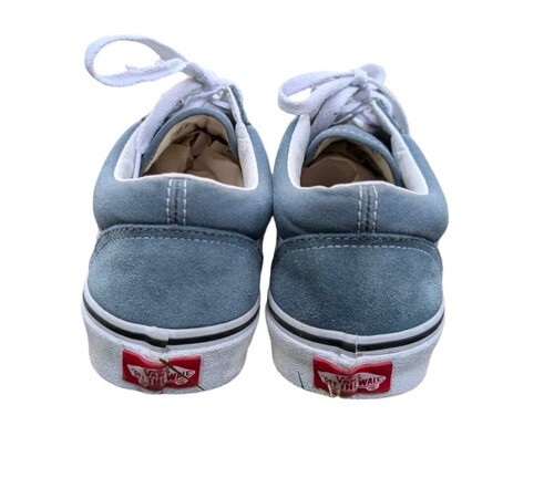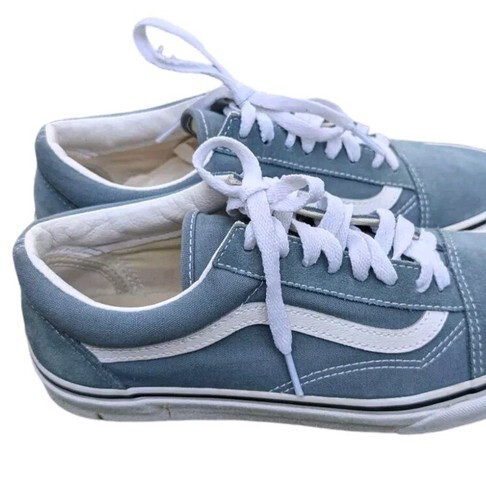 Vans old school show goblin athletic shoes. Men's size 7.5. women's size 9. Light blue suede in front and canvas on the sides. These shoes are in MINT condition! They look!