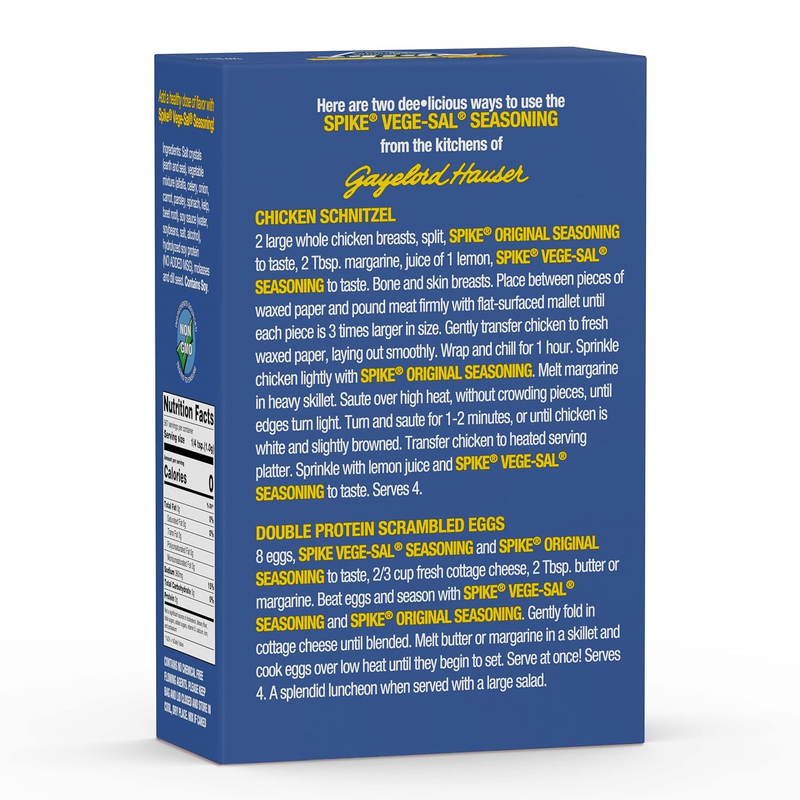SPRINKLE IT ON: Spike Salt Vege-Sal Seasoning is versatile and can be used as a perfect poultry seasoning or popcorn seasoning. Shake it on foods like green or root vegetables prior to cooking or season salads and side dishes just before serving.