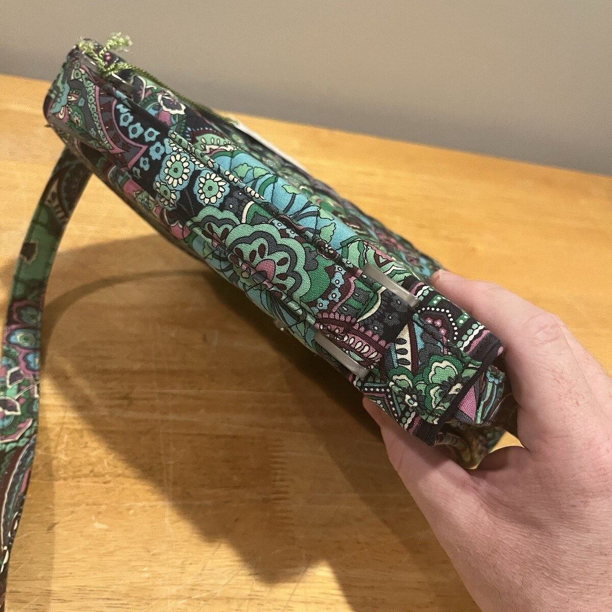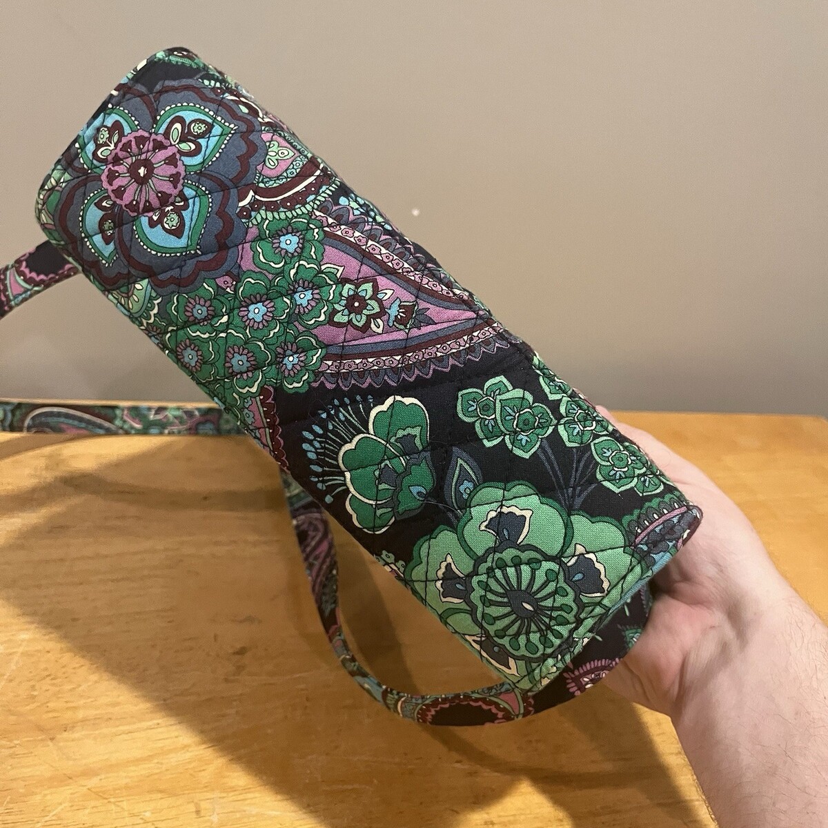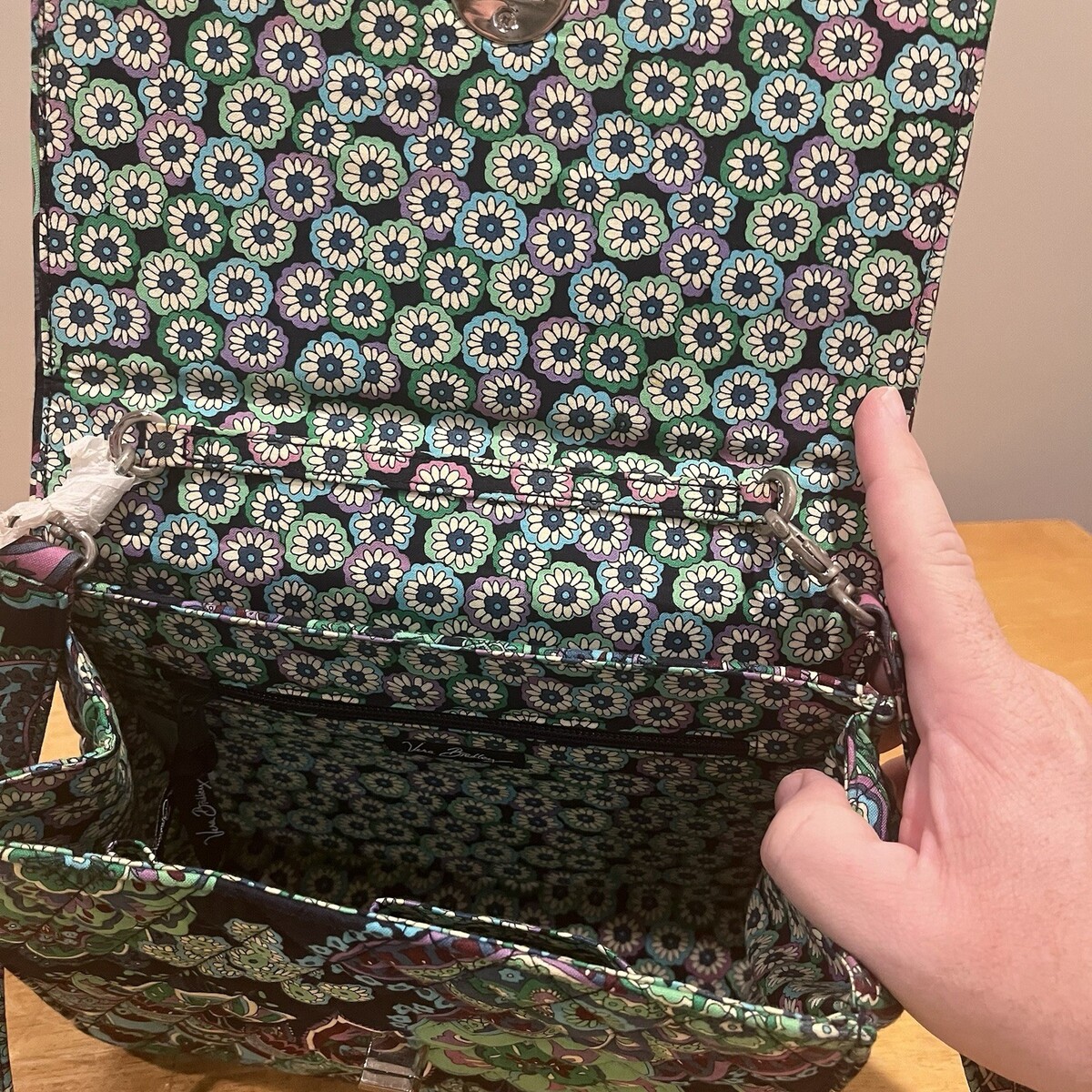 The bag features a turn lock top handle and a cross-body strap in multicolor, making it easy to carry around. The bag is lined with cotton and has inner pockets, making it easy to keep your items organized. The bag is also quilted and has a paisley pattern, making it stylish and unique. The silver hardware adds a touch of elegance to the bag. The Vera Bradley Julia bag is perfect for any woman who wants to stay stylish and organized.
