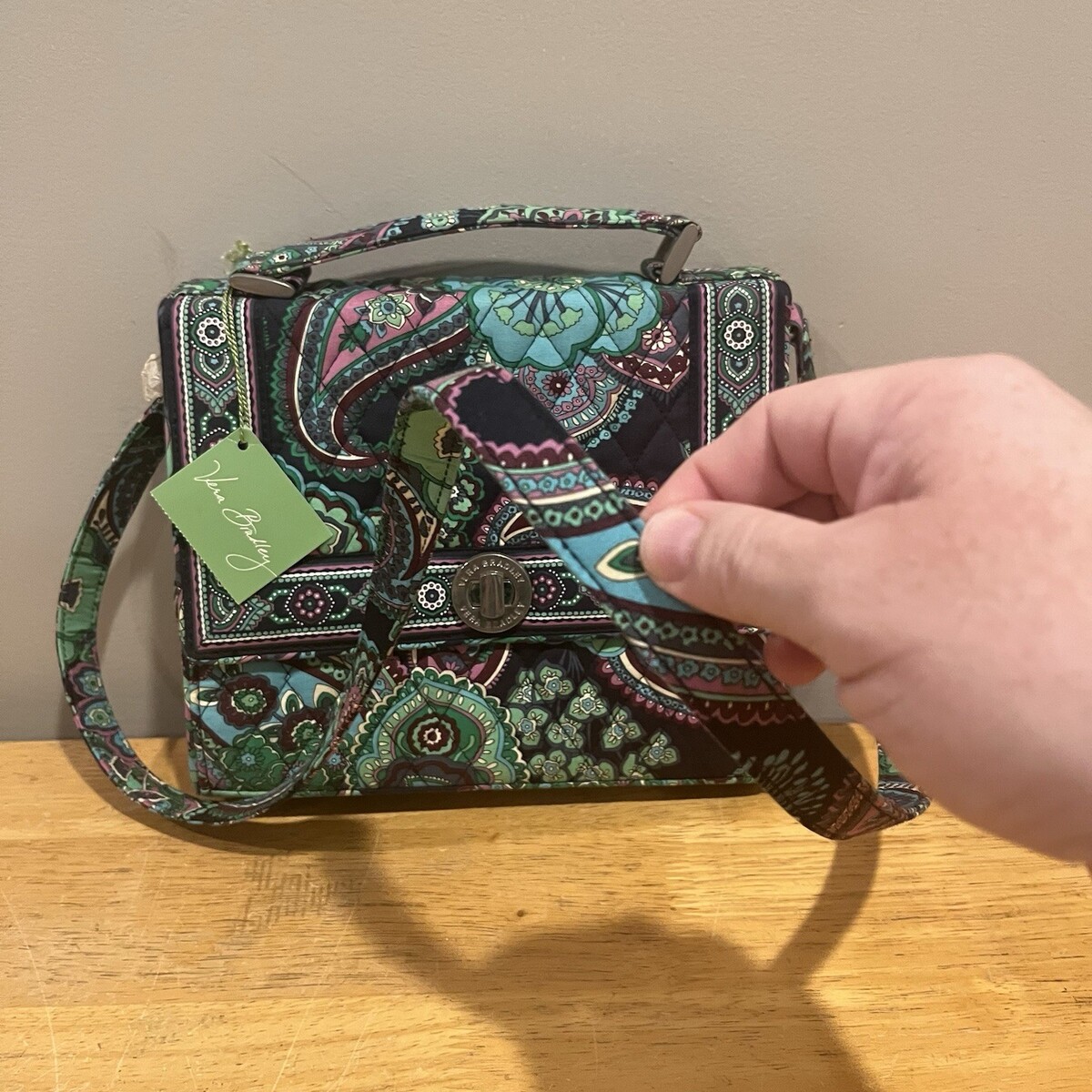 - Vera Bradley Blue Rhapsody Julia Bag Turn Lock Top Handle Square NWT Paisley
