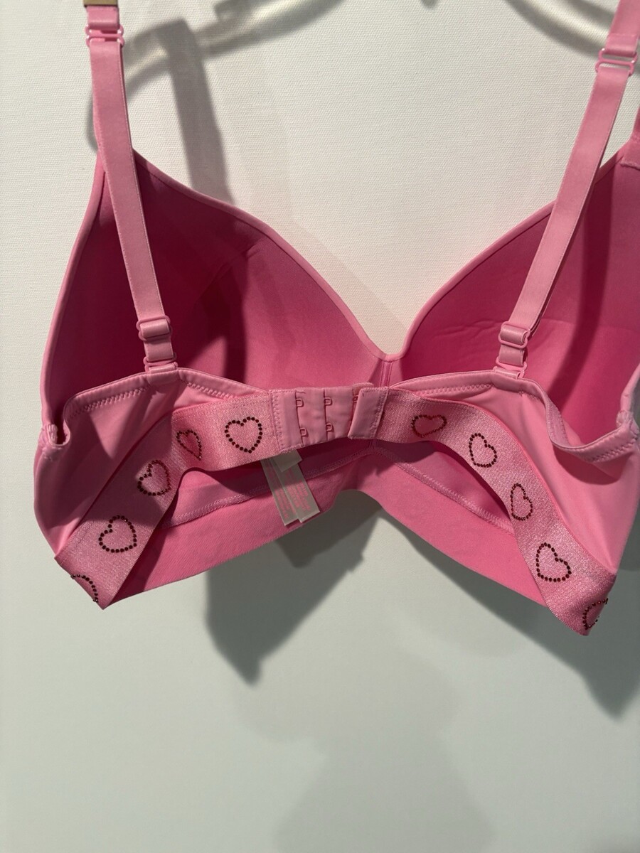 - Victoria’s Secret Pink Rhinestone Heart Lightly Lined Bra Size Size 38DD -NWT
