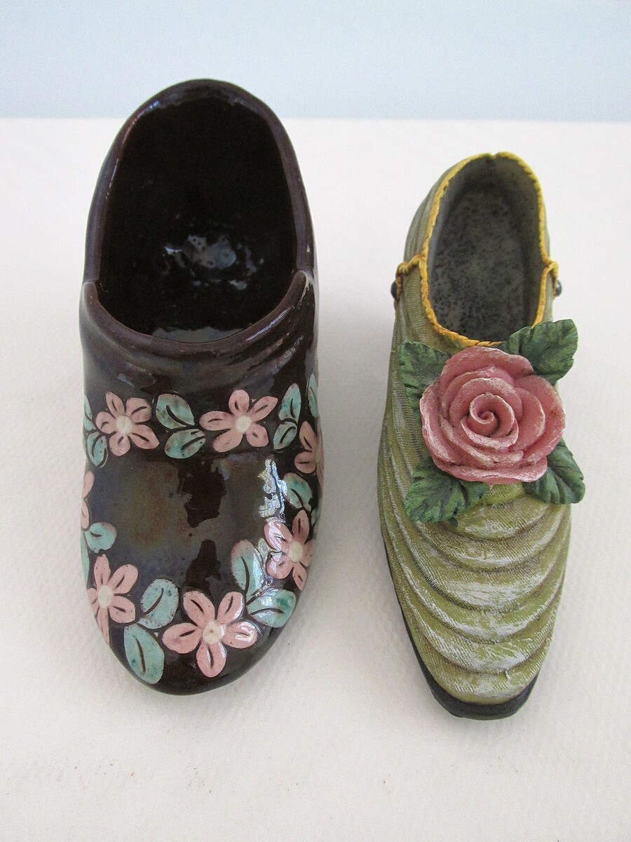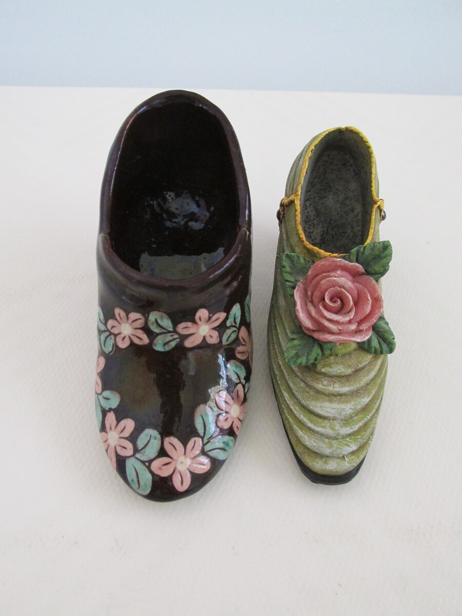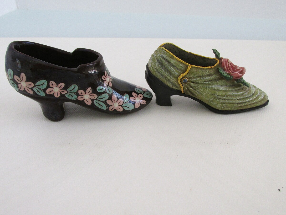 - Victorian Collectible Hand Painted Ceramic Victorian Shoe Lot of (2)