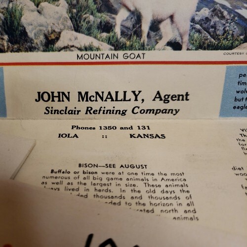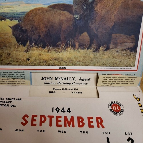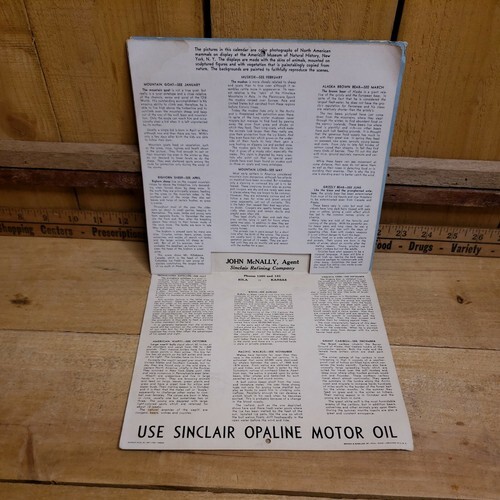 Vintage 1944 Sinclair HC Gasoline Calendar Wildlife JOHN McNALLY Iola Kansas