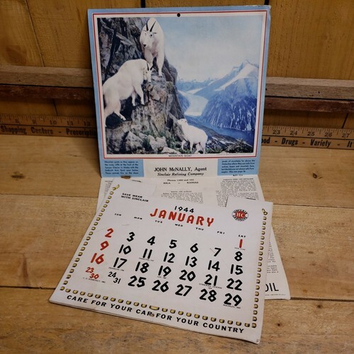 Vintage 1944 Sinclair HC Gasoline Calendar Wildlife JOHN McNALLY, Agent Sinclair Refining Company, Iola Kansas Pre-Owned Condition. the staples have pulled through and April and August are Missing. Pencil writing on bottom right front cover---refer to photos All of My Items Come from a Smoke Free Home I Strive to Ship Next Day Feel Free to Look Through My Other Listings Please Contact me with any issues prior to leaving negative/neutral Feedback or low detail ratings as I will always do my best to solve any problems that may come up! Please refer to all photos above for a better visual description of the product being offered and it's condition. If you have any further questions please feel free to message me Any props that are used in the taking of the photos are not included, only the item/items in the title of the listings are being sold