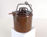 Vintage 1980s Brown Glazed Stoneware Butter Cheese Crock Locking Wire Bail & Lid